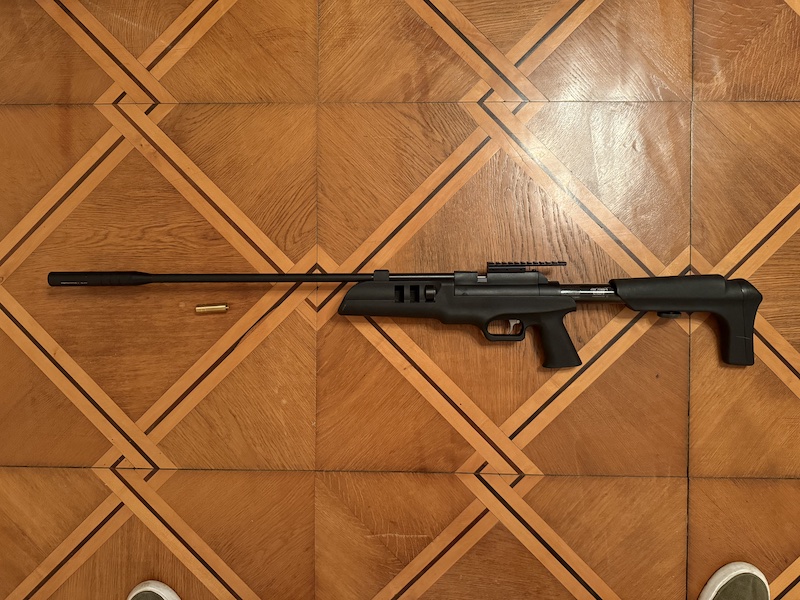 Zum Verkauf steht ein Seitenspanner-Luftgewehr "airmaX SR900S" im taktischen Look. Mit dabei ist ein 9-Schuss-Magazin, ein Einzelschussadapter, ein Schalldämpfer und eine Messinghülse für den Lauf.