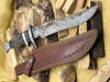 Typ: Handgefertigtes Bowie-Messer aus über 200 Lagen Damaststahl. Walnussholzgriff, Damast-Parierstange und -Knauf. Inklusive Lederscheide.
