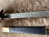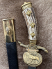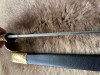 Auflösung einer Eickhorn Sammlung.---Hirschfänger , 3 aufgelegte Eicheln, vergoldete Beschläge, verzierte Klinge und Rücken. Gesamtlänge 49,2 cm