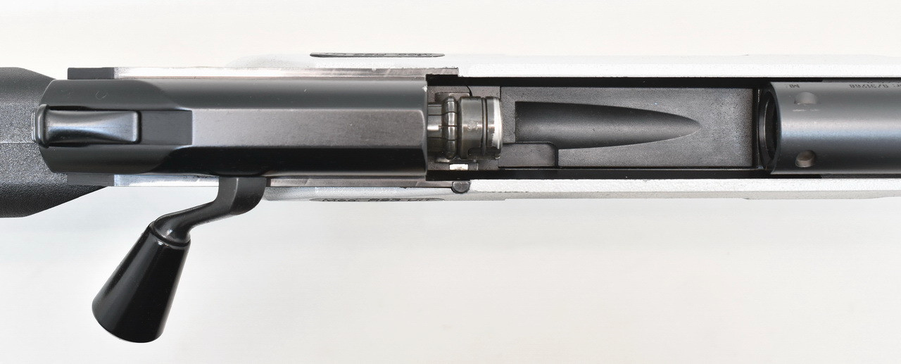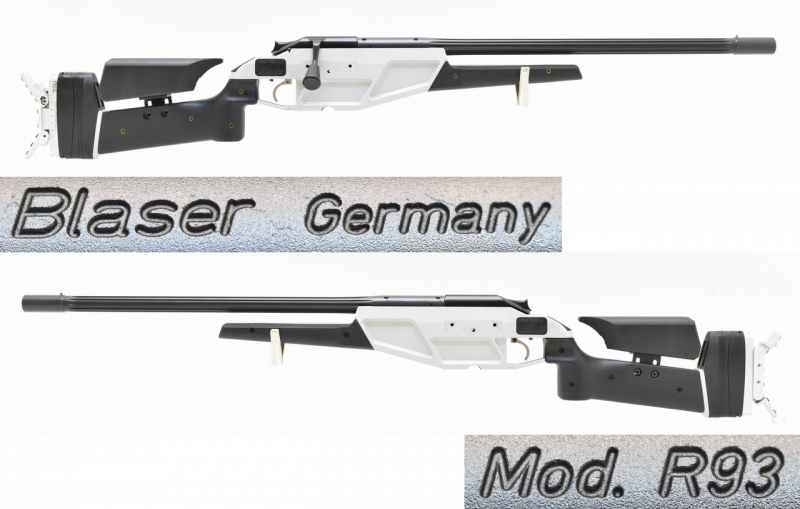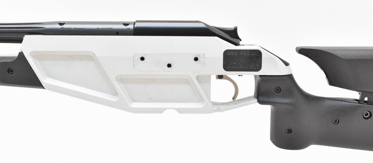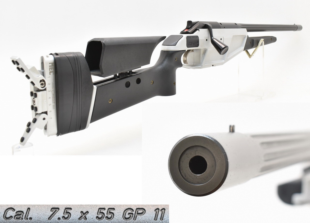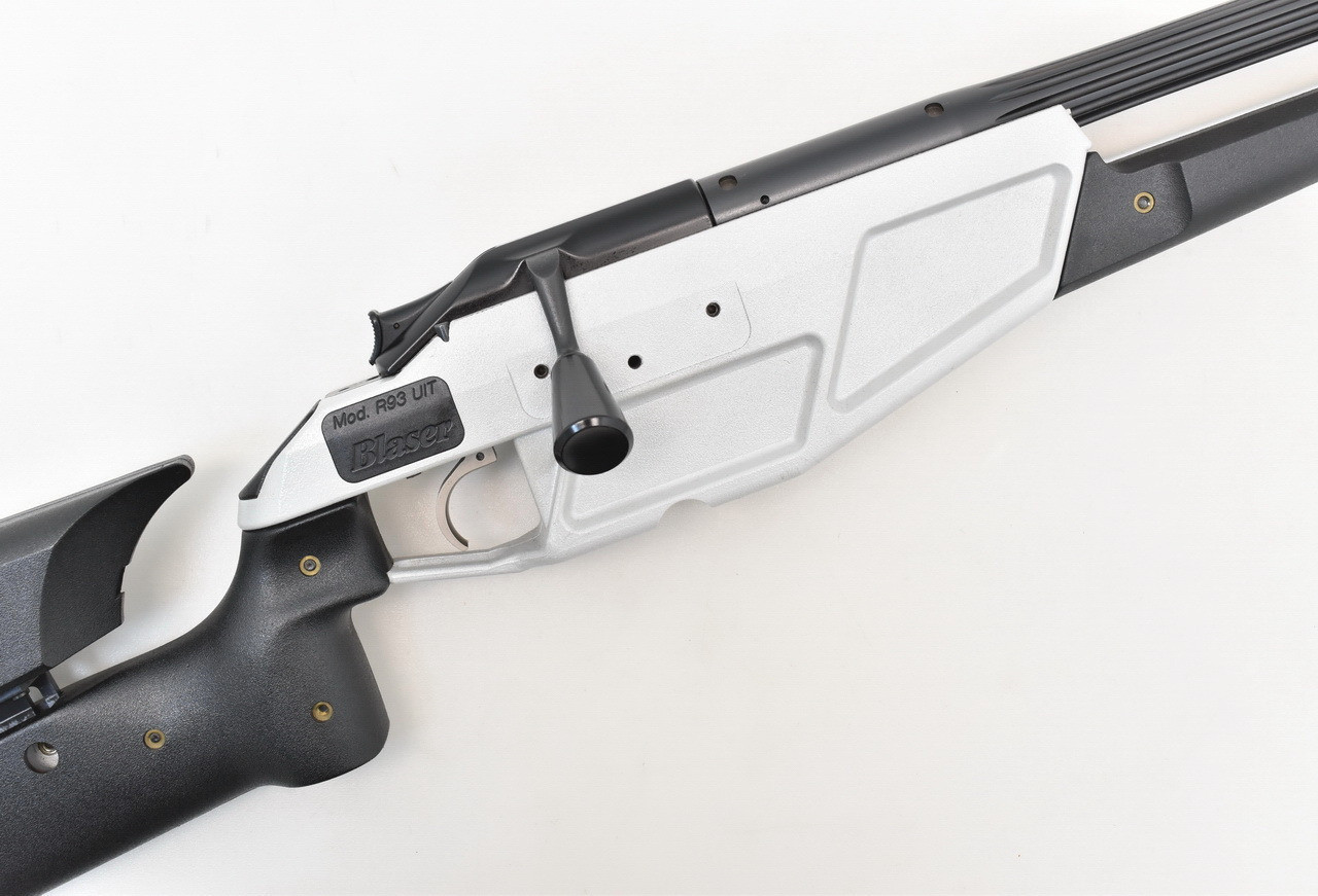 Einschüssiges, 300m - Standardgewehr mit Geradezugverschluß und Handspannung auf bewährter R 93 Basis des bekannten deutschen Herstellers BLASER . Spiegelblanker, kannelierter Präzisionslauf mit 26mm Mündungsdurchmesser. Ulmer Beschuß 1997. Einstellbarer Blaser Kompaktabzug. RAL 9006 farbiger Aluminium - Schaft in Skeleton - Bauweise mit schwarzen Kunststoff Anbauteilen für Rechts- und Linksanschlag. Verstellbare Backe und MEC Contact Alu - Schaftkappe. Gebrauchs- und Lagerungsspuren sind vorhanden. Details siehe Bilder.