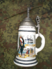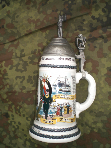 Großer alter, prächtiger Reservistenkrug mit Zinndeckel im Stil um 1900