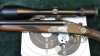 Sauer & Sohn Drilling, Kal. 7x65R und 16/70, zusätzlich eingebaut ist ein mündungslanger Einstecklauf (Keller + Simmann) im Kaliber 6x70R (bequem von der Mündung her zu verstellen), altersgemäße Gebrauchsspuren, per Schwenkmontage ist ein Zeiss Diavari ZM 3-12x56 mit Absehen 1 (unbeleuchtet) montiert, die Oberkante des Objektivs hat ein paar kleine Macken, die Linsen haben die üblichen kleinen Reinigungskratzerchen, Höhen- und Seitenverstellung (Klickrasterung) leichtgängig. Beschuß 1961, Verschluß dicht. Schußleistung siehe Bild: je 5 Schuß mit S&B 11,2g SPCE und einer Ballistic Tip Handladung auf 100m, Läufe innen blank, Lauflänge 60cm , Schaftlänge 34cm, Gesamtlänge 101cm. Rückstecher im vorderen Abzug. Am Hinterschaft war ursprünglich mal eine Federdämpfung verbaut. Von dieser ist die seitliche Schraube "übriggeblieben".