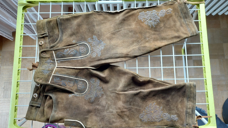 Biete eine tolle Lederhose für alle Gelegenheiten, die mir mit Größe 54 leider zu klein ist. Das Leder ist von guter Qualität und nicht so hauch dünn, wie bei den reinen Biertrinker Hosen, aber natürlich auch nicht mit einer Hirschlederhose zu vergleichen. Die Hose hat dezente Stickereien, Messertasche und einen Brotzeitzwickel, um den Bund etwas zu erweitern. Keine Garantie, Rücknahme, oder sonstiges!