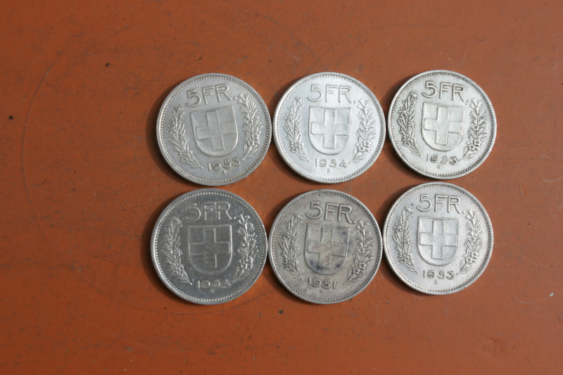 Aus grossem Vorderladernachlass--6 stk. --zustand s. fotos-- --ich wiege 14,98 - 15,06 g--etwas patina -- sehr gut erhalten--- Rand OK --- die Prägejahre und Motive entnehme man den Fotos--betr weiterer infos verweise ich auf die Fachliteratur--gute prepperware weil noch gut bekannt--