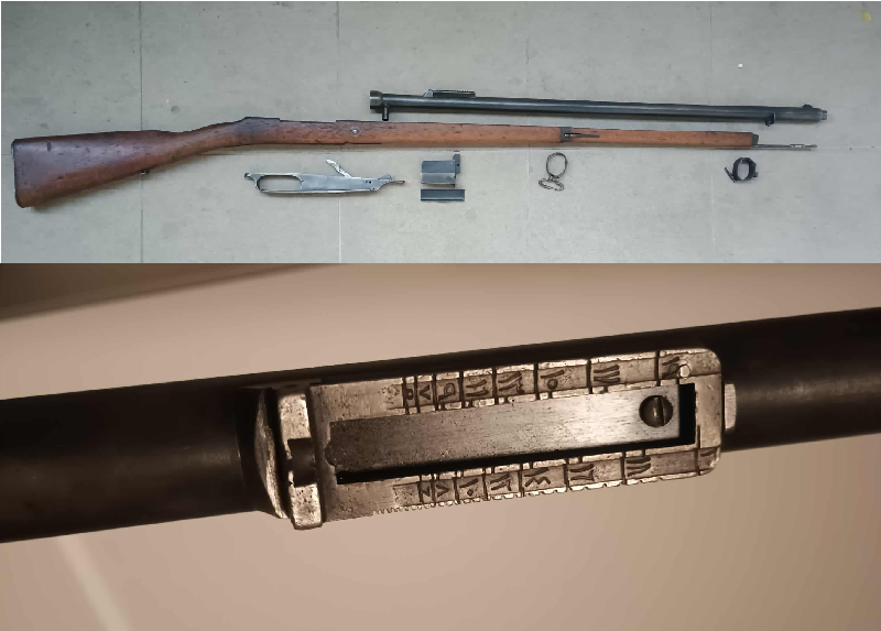 Schaft mit Putzstock, Laufmantel mit Visier, Magazinkasten mit Bodendeckel.