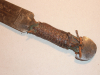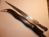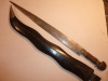Sehr schöne massive verzierte Lederscheide. Länge ohne Scheide 58 cm, Klinge 46 cm.