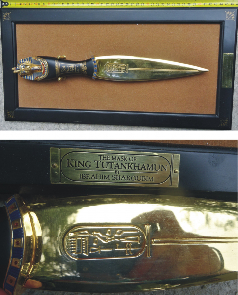 Riesiger, herrlich gearbeiteter Prunkdolch „The Mask of Tutankhamun“ auf großem Wandrahmen. Die Bilder sprechen für sich. Hochdekorativ. Durch Ihr Gebot erkennen Sie an, dass es sich um eine Privatauktion ohne Rücknahme handelt. Haftung für Verlust bzw. Beschädigung der Sendung, die über das Maß der Haftung des Zustelldienstleisters hinausgehen, übernehme ich nicht. Zahlung innerhalb von 1 Woche. Versand 8,-€ versichert, nicht verhandelbar. Paypal NUR auf ANFRAGE!! Viel Glück beim Bieten!