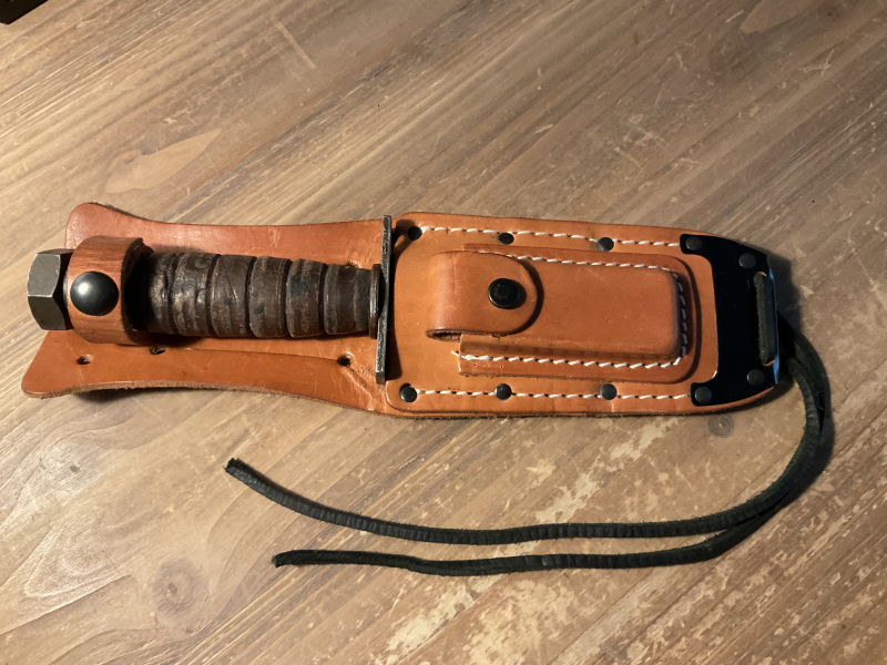 Survival Knife US Army aus 2/76 , Scabbard aus etwa 2000 .Frühes Messer mit fast 50 Jahren auch Einsatzspuren ,aber