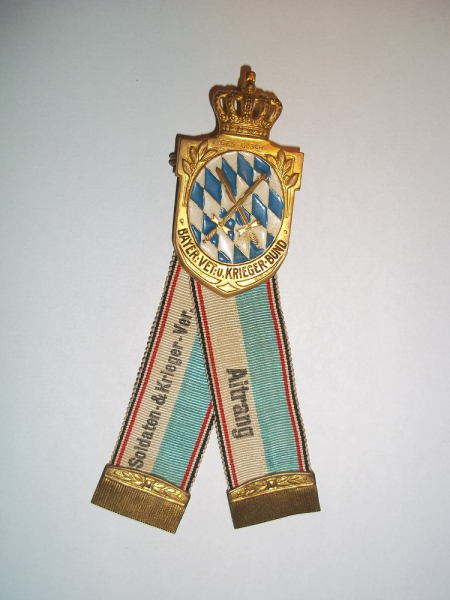 Sie bieten auf ein seltenes, altes Abzeichen des Bayerischen Veteranen und Krieger Bundes. Die Bandschleifen haben einen Metallabschluß. Hersteller: Deschler & Sohn München-Giesing. Aufschrift: "Solsaten- & Krieger-Verein Aitrang". Erhaltung: siehe Bild. Auf eigenes Risiko Versand als Päckchen € 5.-. Privatverkauf ohne Garantie und Rücknahme