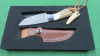 1 Puma TEC Messer " Damast " Das Messer besitzt sehr schöne Hirschhorngriffschalen, 1 Luxus Box, 1 Sattellederscheide, das Messer ist neu/ungebraucht.