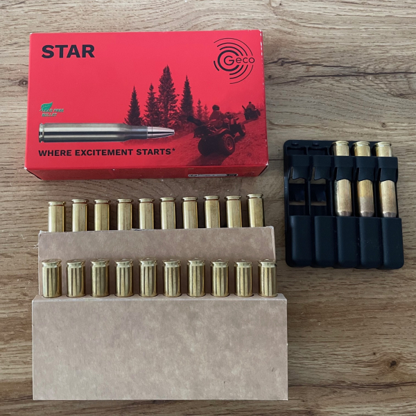 hiermit biete ich 43 Schuss der GECO Star in .30-06 mit dem 10,7g Geschoss an. Die Munition hat untereinander dasselbe Los und wird nur auf Grund eines Geschosswechsels verkauft.