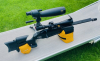 Geringe Schussbelastung, mit voll einstellbarem Schaft, Flimmerband und Mündungsbremse.