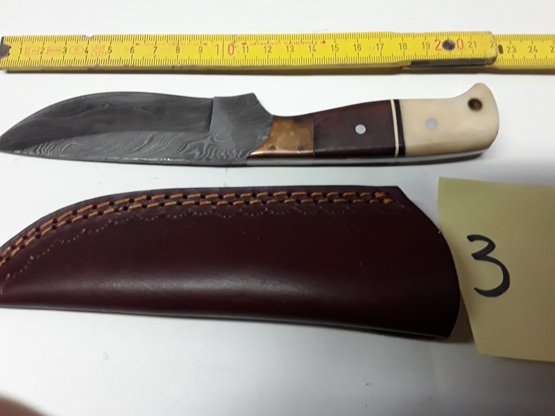 Da ich meine Messersammlung aus Altersgründen auflöse wird dieses (andere folgen noch),..Handgefertigte Damastmesser Verkauft, es ist ein Sehr stabiles Damastmesser,Klinge 3,6mm stark durchgehend,mit Holz u. Horn Griff,mit Befestigungsbohrung für Kordel o. Kette,außerdem ist eine