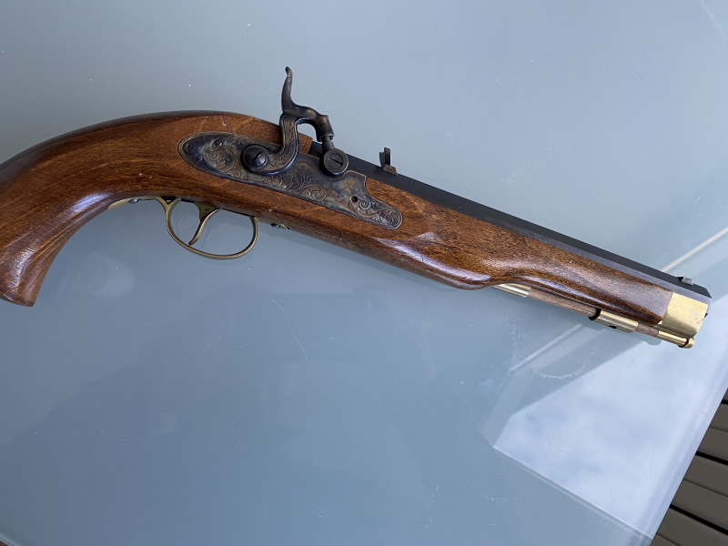 Biete hier eine sehr schöne Vorderlader Pistole Kentucky.45 von dem spanischen Hersteller Dikar an. Die Pistole befindet sich in einem sehr guten gebrauchten Zustand. Siehe Bilder keine Rücknahme keine Garantie keine Gewährleistung keine Haftung auf sachmängel jeglicher Art Käufer akzeptiert das mit Kauf.