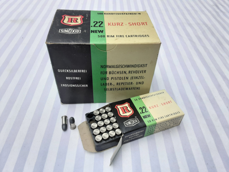 Aus Nachlaß werden 500 Patronen im Kaliber .22kurz von R25 der Firma RWS angeboten.