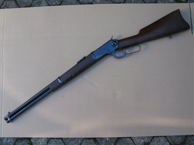 Hier biete ich aus den Beständen eines Schützenkameraden, der sich aus dem aktiven Schießsport zurückzieht, einen Winchester Unterhebler in .44-40 an. Er ist in einem altersentsprechenden Zustand, die Mechanik läuft und er wurde wohl vor Jahren auch mal probegeschossen. Die Züge sind flach, aber erkennbar, der Lauf hat einige Rostnarben. Die Metallteile wurden wohl mal neu brüniert, der Schaft sieht dagegen etwas verwahrlost aus. Allerdings ist soweit alles solide. Durch die Lagerung sind wieder einige Rostspuren zu erkennen. Siehe Fotos.