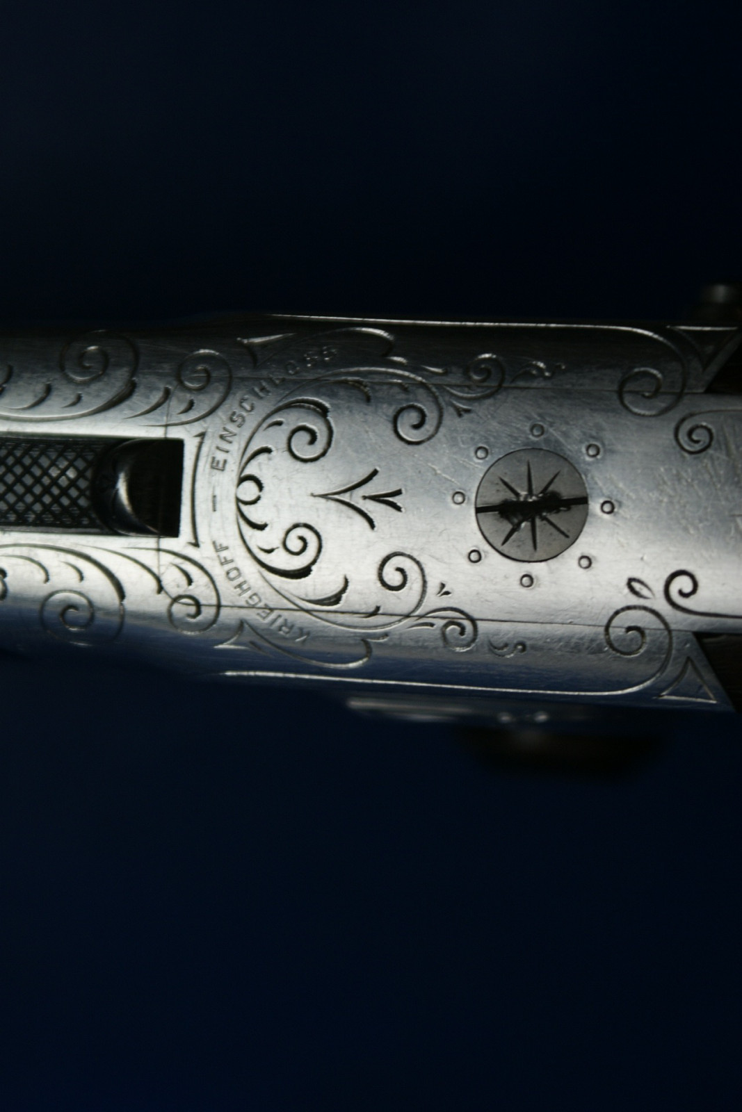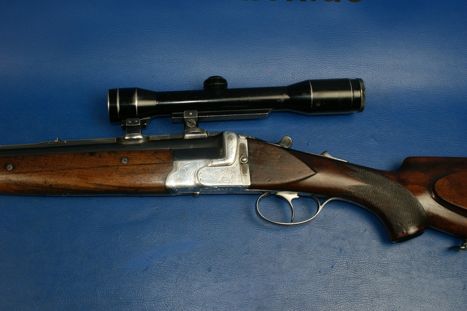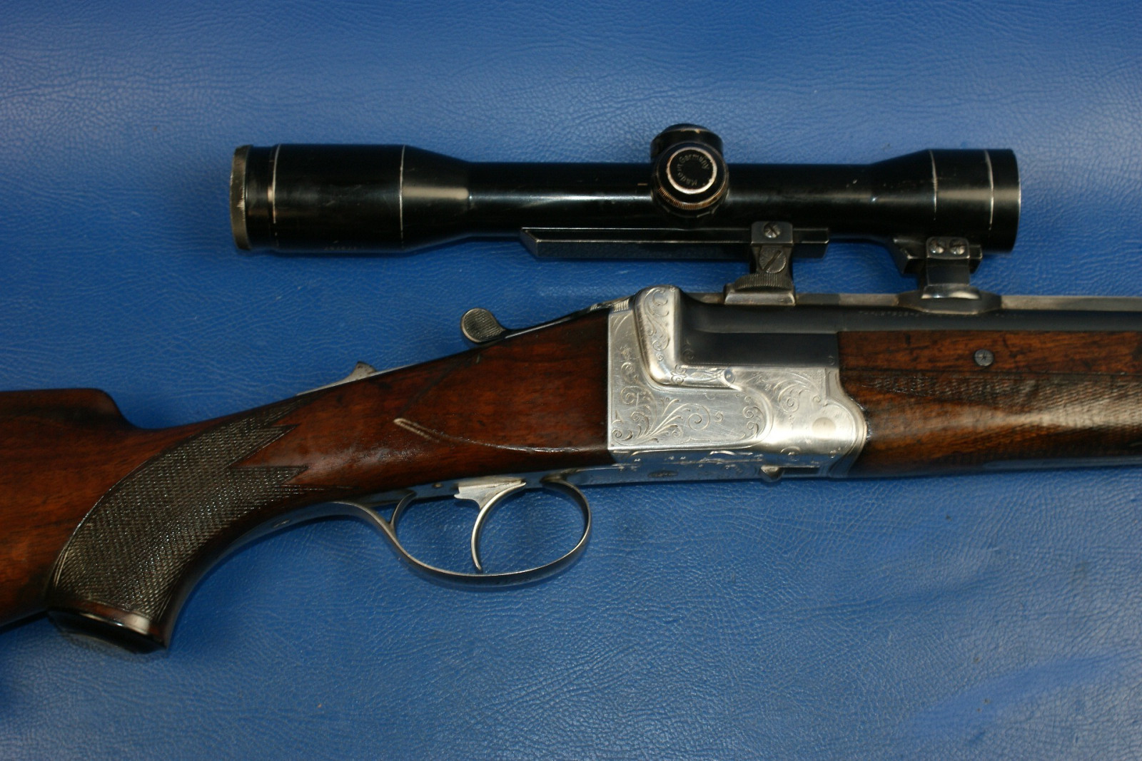 Lager- und Gebrauchsspuren. Beide Läufe in einem Top Zustand. Läufe umschaltbar, Handspanner. Patronenetui im Hinterschaft. Französicher Stecher. Türme nicht getestet.