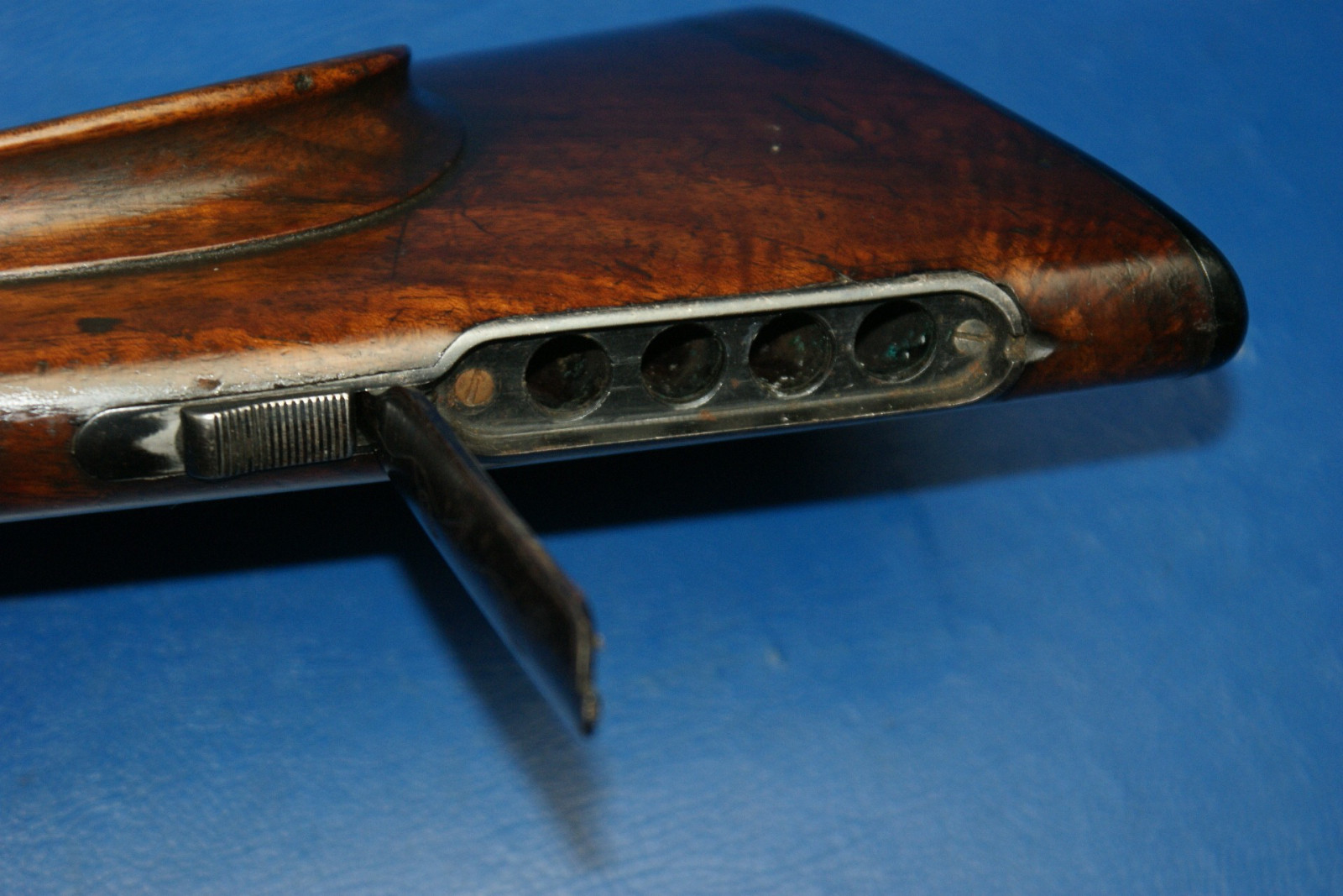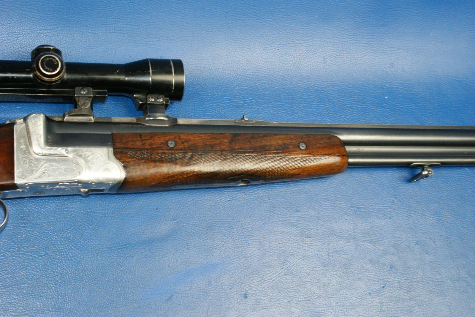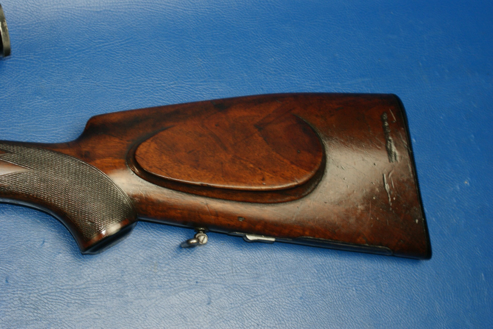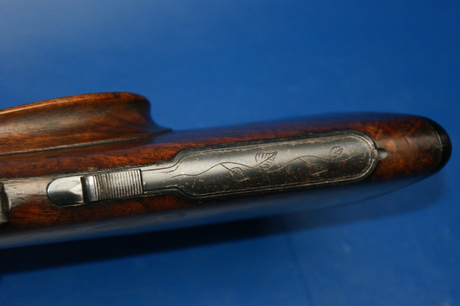 Lager- und Gebrauchsspuren. Beide Läufe in einem Top Zustand. Läufe umschaltbar, Handspanner. Patronenetui im Hinterschaft. Französicher Stecher. Türme nicht getestet.