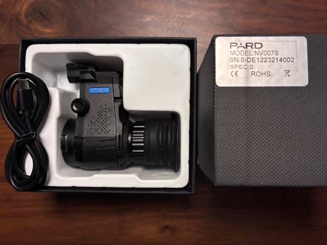 Zum Verkauf steht ein wenig benutztes PARD 007S ohne eingebautem IR-Strahler - wurde von PARD als SO Modell in dieser Version angeboten - so dass es in einigen Bundesländern auf ein Zielfernrohr montiert und mit einem externen und nicht auf der Waffe montierten IR-Strahler zur Jagd verwendet werden darf. Der MAXIMTAC IR 940 Strahler kann - wo erlaubt - mittels der justierbaren Schnellmontage der v. g. Firma auf dem PARD montiert und auf den Zielpunkt ausgerichtet werden.