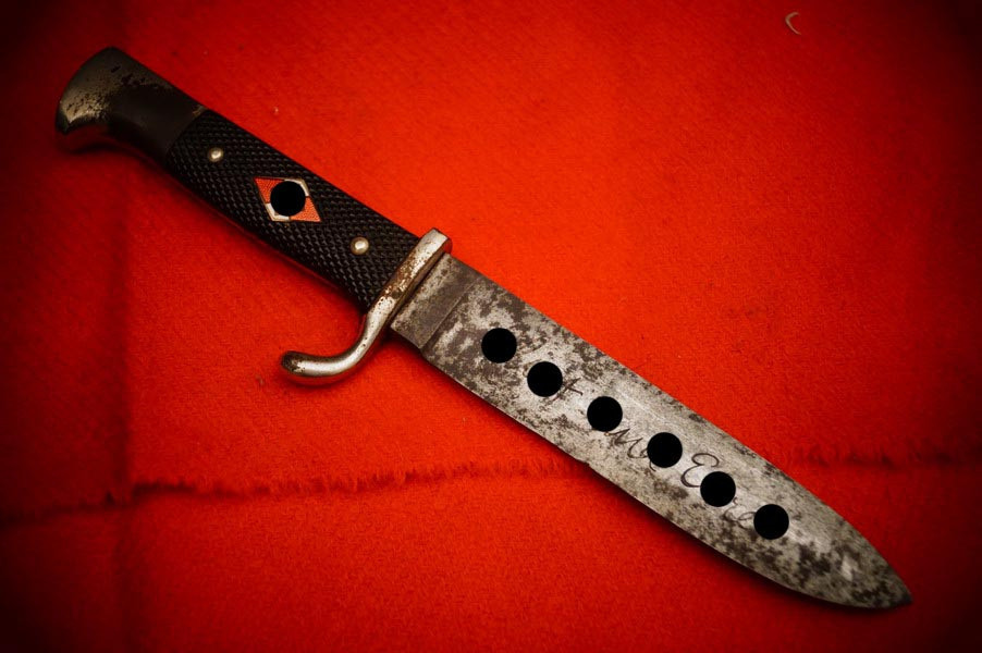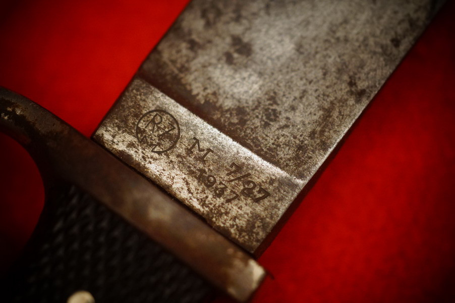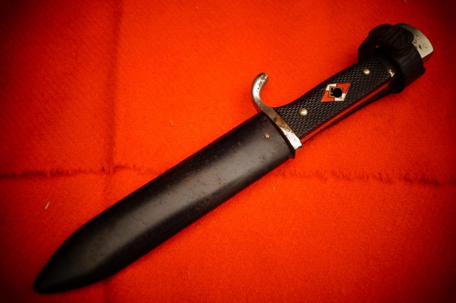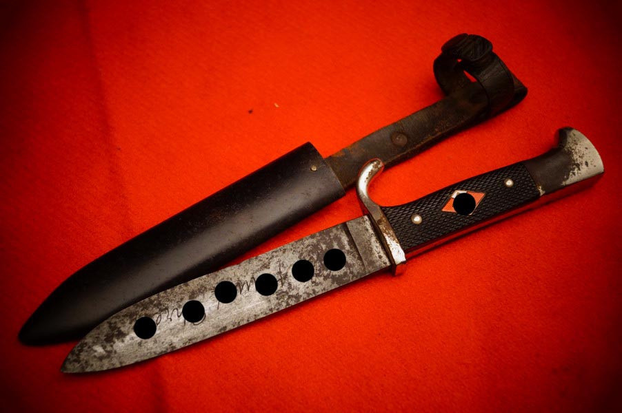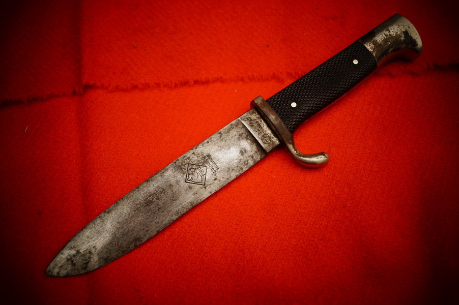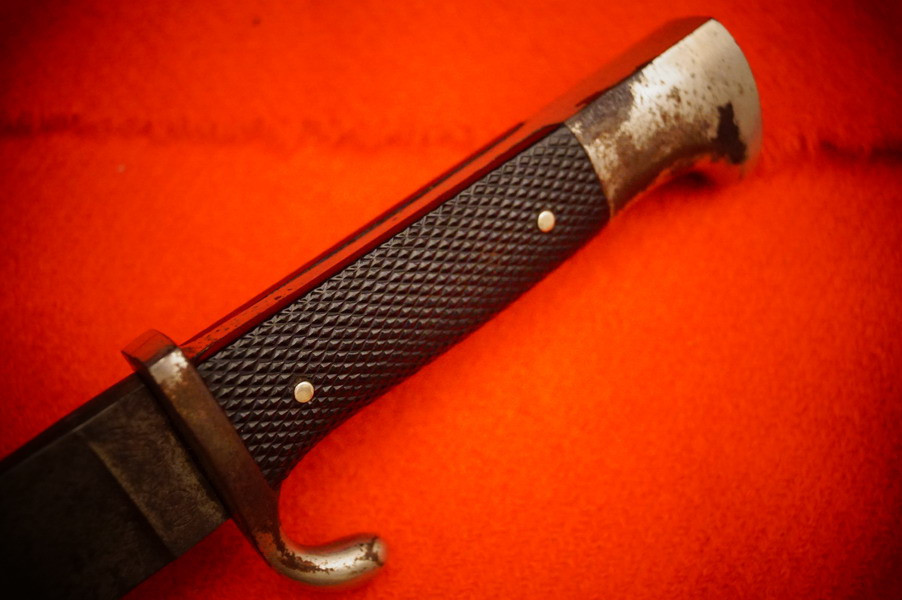 Scheide ist magnetisch, Raute wackelt nicht, Griffschalen sind korrekt 2WK, alles insgesamt ein noch sehr schönes frühes HX Messer komplett!