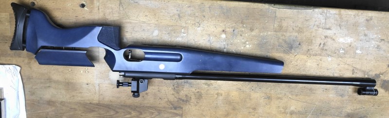 Gebrauchte Einzelladerbüchse mit leichte Gebrauchsspuren und einem kleinem Manko, Brünierung und Lauf OK, sehr feiner Abzug,
