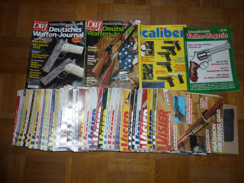 Verkaufe Konvolut an Waffenmagazinen. Visier aus 1988: Hefte 4-10 und Heft 12, aus 1989 Hefte 1-12, aus 1990 Hefte 1-12, aus 1991 Hefte 1-4. Sowie das Internat. Waffenmagazin Heft 4/1990, Caliber Heft 5 Aug./Sept. 1993, DWJ Hefte 8/1991 und 4/1995. Ich bewerte die Hefte mit Zustand befriedigend, weil diese ca. 30 Jahre und länger im Keller aufbewahrt waren und dadurch zum Teil minimal, aber erträglich, stockfleckig und mit leichtem Kellergeruch sind. Anstreichungen können vorhanden sein. Es sind keine zerfledderten Hefte dabei. Privatverkauf, daher keine Gewähr, keine Garantie und keine Rücknahme.