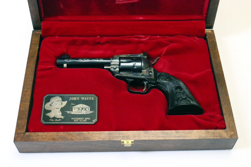 - originale Sammlerschatulle als Holz (Oberseite bez. "The Duke" & Colt-Logo), ausgekleidet mit rotem Samt und Gedenkplakette