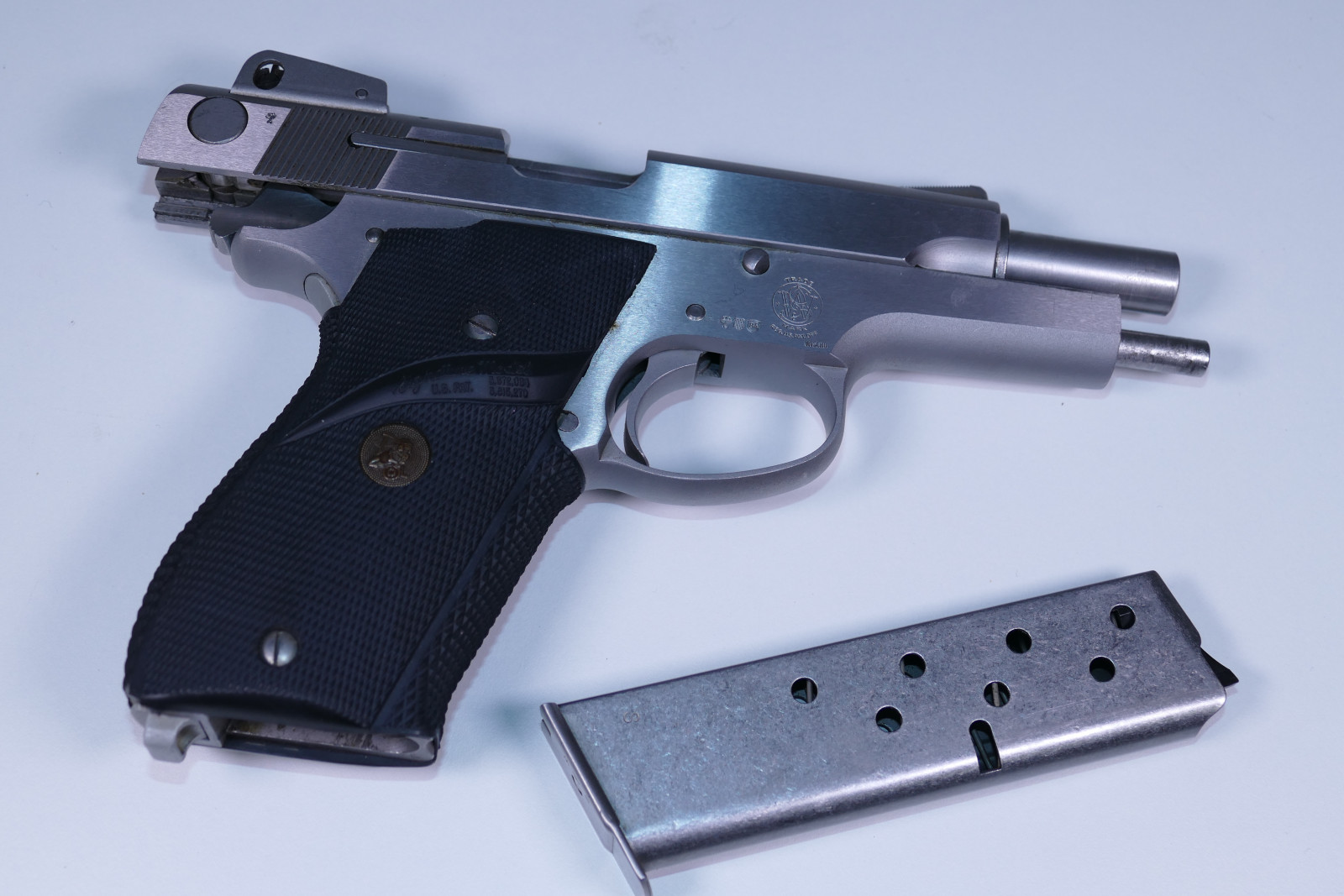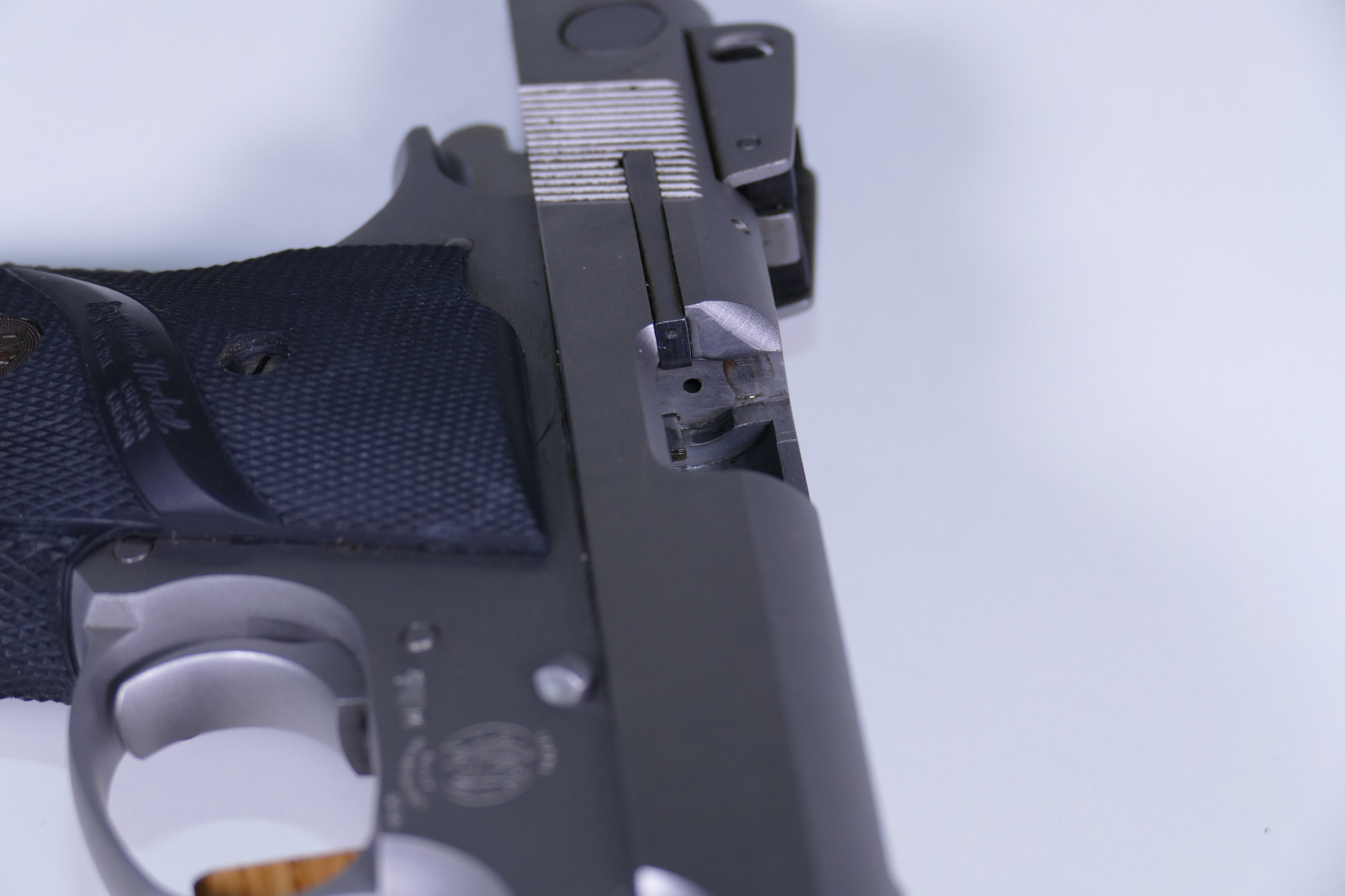 ist offensichtlich nur sehr wenig genutzt worden. Montiert sind Pachmayr-Griffschalen und im Lieferumfang ist das original-Magazin. Münchner Beschuss von 1984. Viel Spaß beim Bieten!