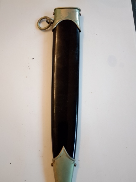 Scheide für einen NSKK oder XX Dienst Dolch, Körper stahlblech Beschläge Neusilber, alle Schrauben vorhanden gegebenenfalls wurde der obere Ring mal als repariert, die Scheide ist gegebenenfalls alt nachlackiert.