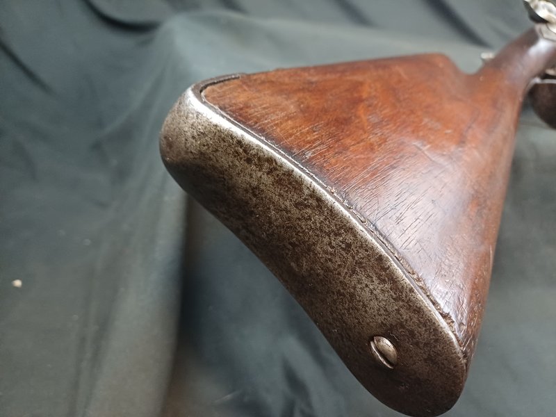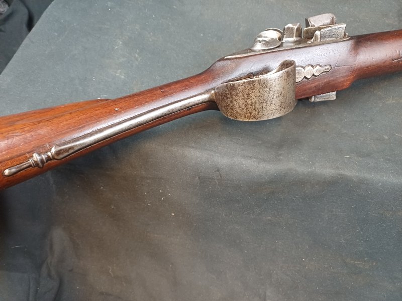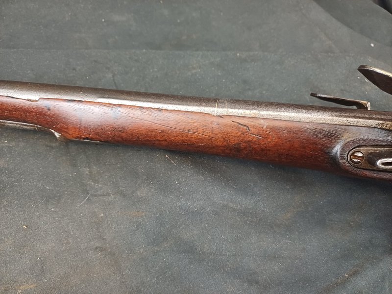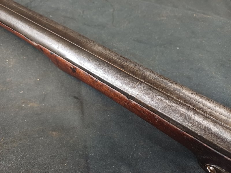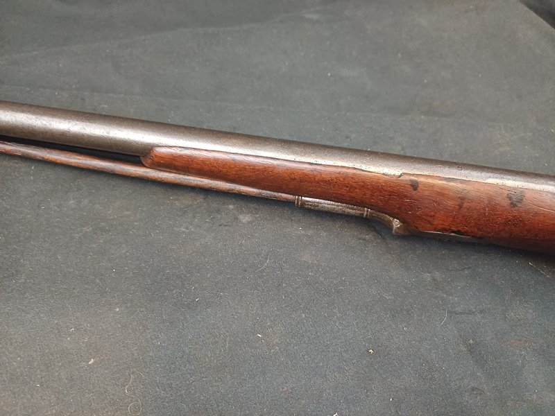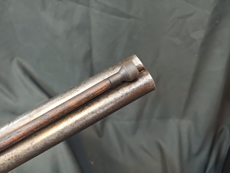 Die Flinte ist insgesamt in gutem Zustand! Der Ladestock ist eine Nachfertigung aus Eiche mit Büffelhorndopper.