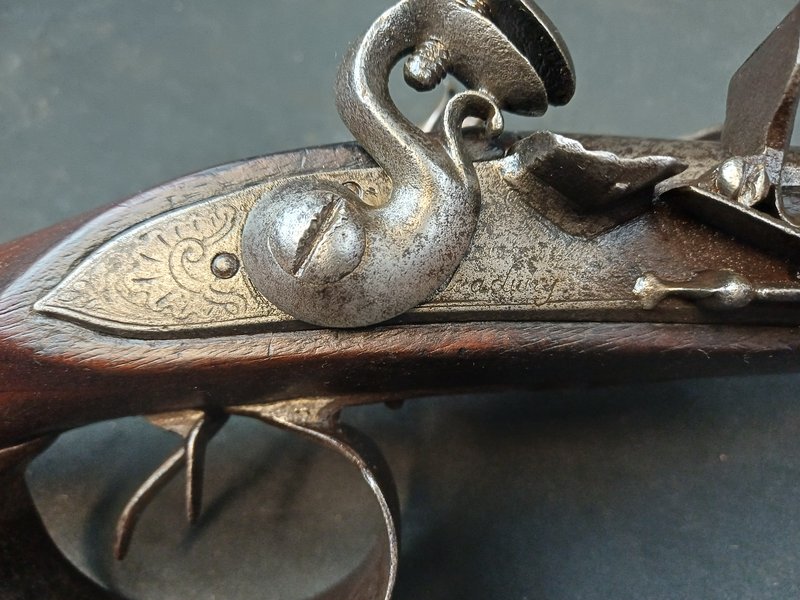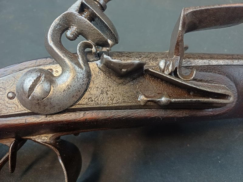 Schlosstyp: Steinschloss, beide Schlösser funktionieren in Lade- und Spannrast, Zündlöcher sind frei, Inschrift: "Jean Louis