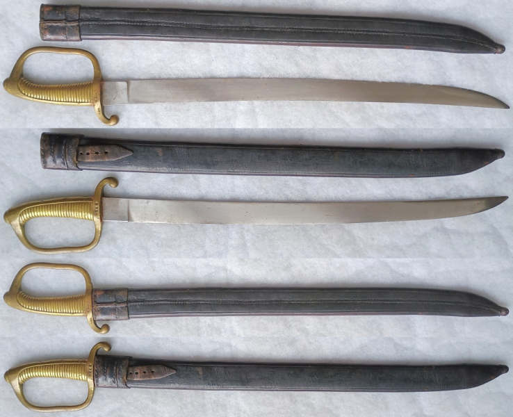 Hersteller Carl Eickhorn, Solingen (Firma & Logo auf Klinge). Lederscheide mit verdeckten Beschlägen. Klingenlänge 55,5 cm, Gesamtlänge 68,5 cm, Klingenbreite an Griff 3,2 cm. Einige z.T. unleserliche Markierungen auf Griff und Lederscheide.