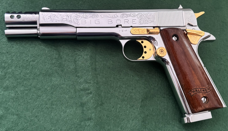Eine 1911 Walther Big Bore; Handgraviert und Verchromt/ Vergoldet