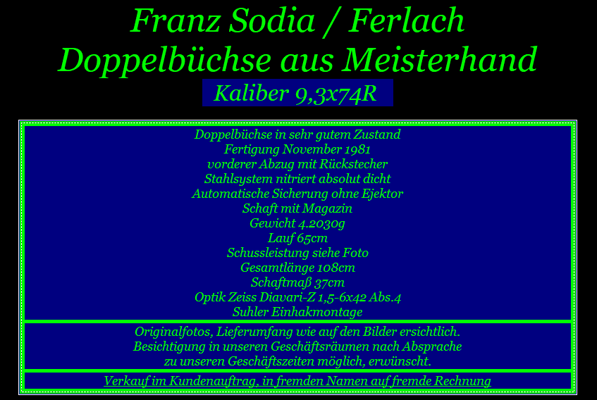 Franz Sodia / Ferlach Doppelbüchse Kaliber 9,3x74R