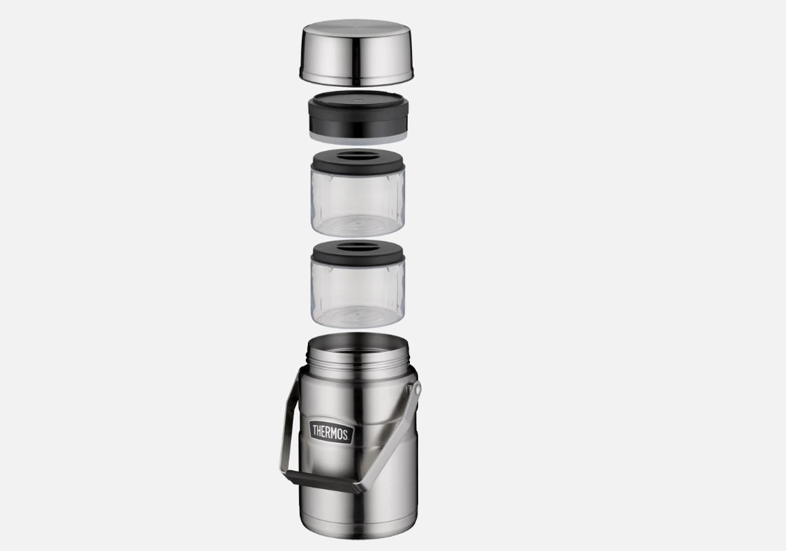 Mit dem besonders großen Isolier-Speisegefäß der Serie Stainless King von Thermos genießen Sie unterwegs große Portionen Ihrer selbst gemachten Gerichte.