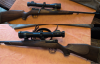 Mit Visierung, Gesamtlänge 105 cm, Hinterschaft bis Abzug 37,5 cm, Lauflänge 56 cm, Innenprofil scharfkantig blank, Doppelzüngelstecher, Schaft mit Edelholzabschlüssen und Gummischaftkappe - montiert mit Schwenkmontage Zeiß Conquest DL3-12x50, Absehn 4 (Neuwertig).