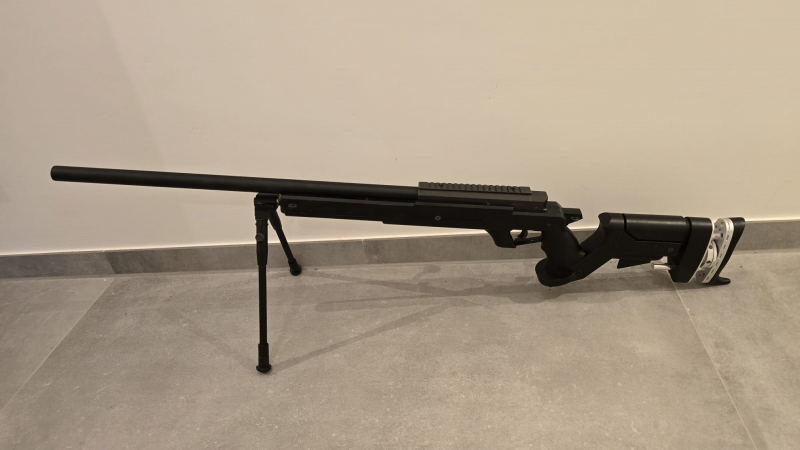 Im Lieferumfang enthalten ist ein Zweibein welches mit einem selbst gedrehten Adapter versehen ist. Es ist das einzige Zweibein was an dieses Modell passt. Enthalten sind auch über 5000 Bio BBs mit 0,2g.