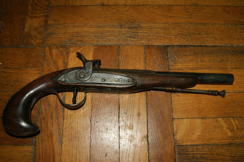 Biete hier eine schöne große Vorderladerpistole an, antikes Stück, Hahn rastet nicht mehr ein,signiert Pietro Bordighi,gravierter Lauf und System, sicherlich nur noch selten zu bekommen und etwas für Sammler. Viel Spaß beim Bieten.