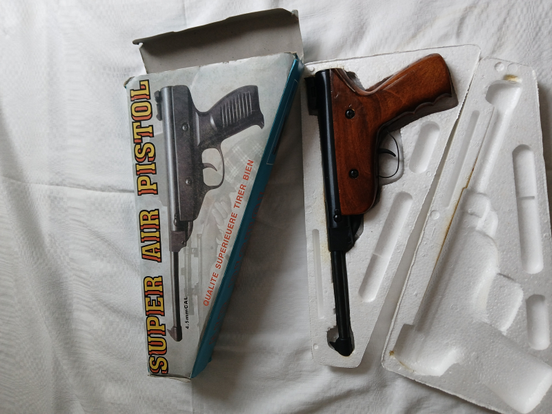 Zu verkaufen eine unbekannte funktionsfähige Luftpistole aus Nachlass in gebrauchten Zustand, Cal. 4,5 Knicklauf.