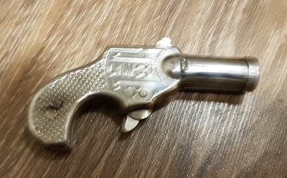 Sammler Knallkorkenpistole volle funktion ,alt, kein rost fast wie neu privatverkauf,keine garantie,keine rücknahme.versand nur mit deutscher lieferadresse.keine inseln.