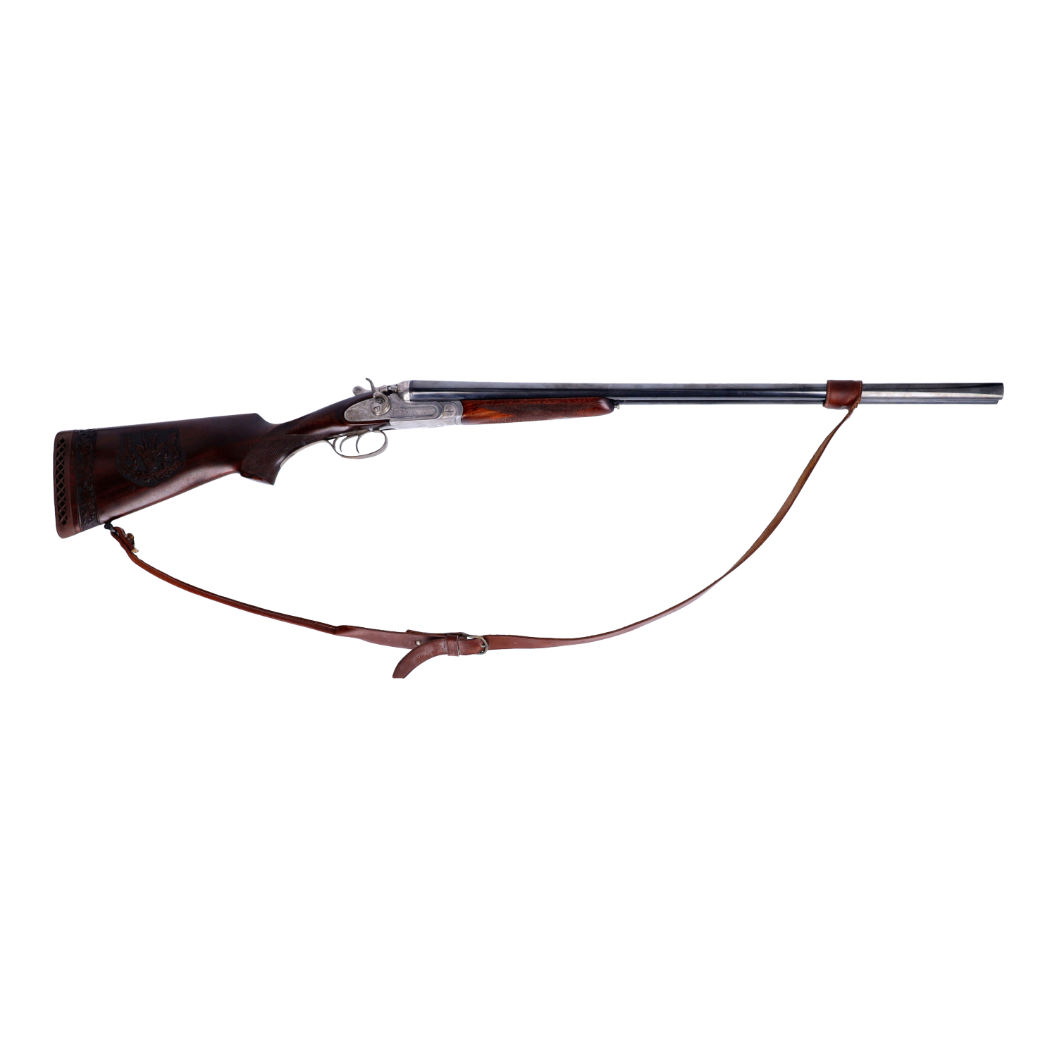 Doppelflinte aus dem Haus Rottweil, Modell 95, Schaft gut erhalten mit hochwertiger Schnitzung, 2 Abzüge
