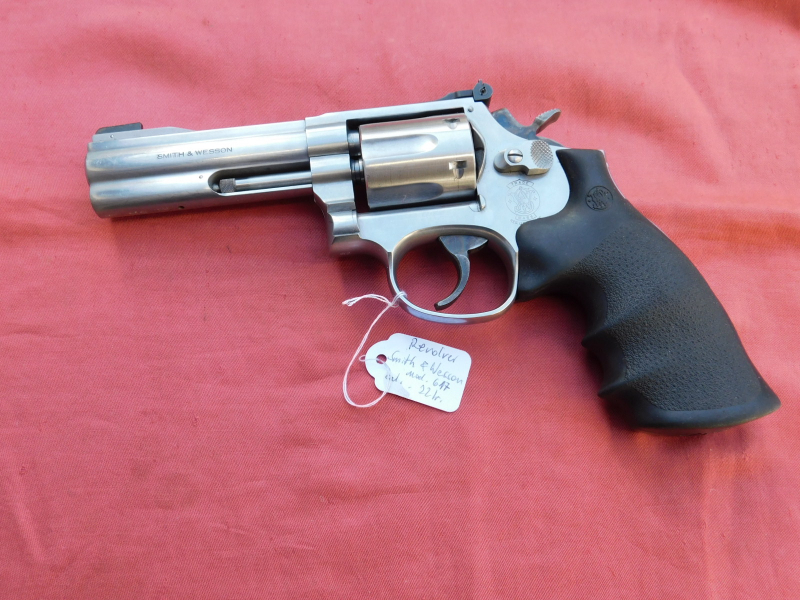 Revolver von S&W Modell 617 im Kal. 22 Lr. 6 Schuss Trommel, verstellbare Visierung. Sehr schöne originale S&W Gummigriffschalen, seltene 4 Zoll Lauflänge, Lauf innen spiegelblank und Profil scharf. Die Waffe hat meiner Meinung nach hat die Waffe nur minimale Gebrauchsspuren. Meiner Meinung nach fast neuwertig. Gültiger Beschuss vorhanden.