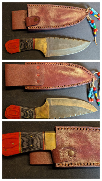 Massives schweres Messer mit Damastklinge und dicker Lederscheide Länge ca 27 cm siehe Bilder