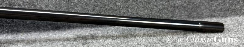 645 mm langer Matchlauf mit neuwertigem Zug-/ Feldprofil. Tief schwarze Brünierung, ohne erkennbare Gebrauchsspuren. Ölgeschliffener Nussbaum-Matchschaft, Deutscher Stecher, manuelle Sicherung.