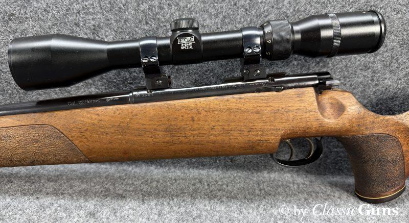 Das mittels Aufschubmontage aufgesetzte Zielfernrohr LISENFELD 3-9X42 SPEZIAL (Abs. 4) wurde von uns geprüft und ist technisch einwandfrei und schussfest. Das Zielfernrohr sowie die Montage erhalten Sie von uns gratis mit zur Waffe (somit hierauf keine Garantie oder Gewährleistung).
