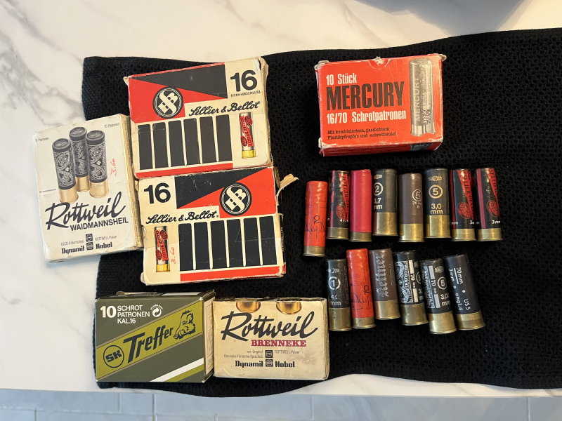 Verkauft werden 54 Schuss Kal.16, 3mm sowie 15 Flintenlaufgeschosse.