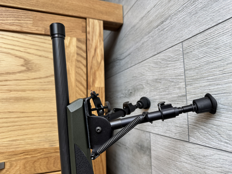 Der montierte Präzise Jagen Adapter mit Deckel, gehört auch zum Lieferumfang. Die Waffe hat ein M15x1 Gewinde. Der montierte Schnellwechseladapter von Svemko ist nicht Teil der Auktion. Die Waffe wird mit dem originalen Gewindeschutz verkauft. Diese Ausführung verfügt über einen Stecher im Abzug, wodurch ein sehr feinfühliger Abzug vorhanden ist bei Bedarf. Auch diese Waffe ist wie alle meiner Waffen kratzerfrei und befindet sich in Bestzustand. Schussbelastung bis jetzt knapp 100 Schuss. Eingeschossen auf Sako Powerhead Blade. Restmunition wird mitgegeben ( noch 25 Schuss ). Das montierte Harris Zweibein gehört ebenfalls zur Auktion dazu.
