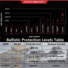 Die Schutzklasse des Helms bietet bis Kaliber .44Magnum stand. (Siehe Tabelle im Bild)