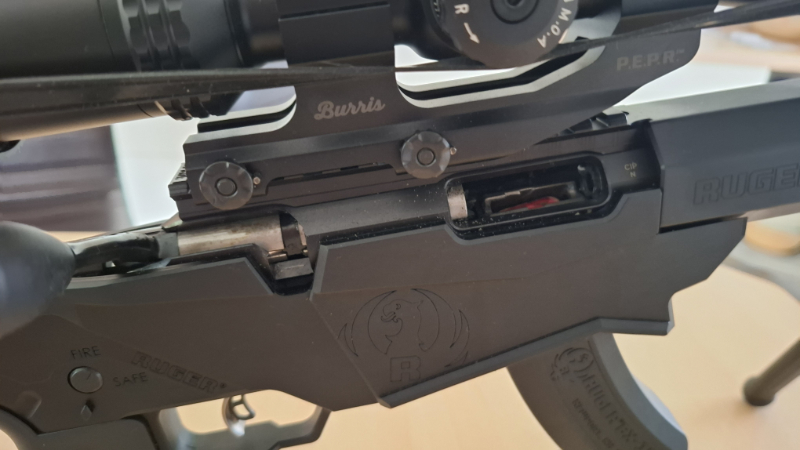 Das Zielfernrohr ist auf dem Gewehr mit einem Burris AR-P.E.P.R. Mount befestigt.