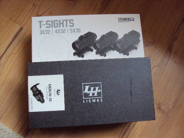 Verkaufe meine Wärmebild-Komplettlösung für die Nachtjagd bestehend aus einem Steiner T332 Leuchtpunktvisier auf einer Innomount Sattelmontage für Blaser Waffen und einem Liemke Merlin 35 Vorsatzgerät. Alles wenig genutzt in einem einwandfreien Zustand. Das Steiner ist eine vollwertige Drückjagdopzik auch für weitere Schüsse und das Liemke kann mit einem beiliegenden 3x Okular als Handgerät genutzt werden. Durch die Montage sitzen beide Geräte auf der Schiene ohne dass sie einander berühren. Also keine Rückstoßkräfte auf die Optik. Das Liemke kann lautlos mit einem Handgriff ab- und aufgesetzt werden. Eine sehr durchdachte und vor allem sehr kompakte Lösung. Nicht größer als ein ZFR. 4 Akkusätze und Ladegerät für das Liemke inklusive.
